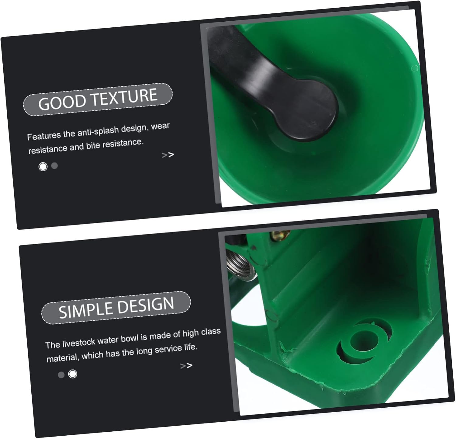 Package Include 1 x livestock water bowl Features - Color: Black, Green Cattle Water Fountain - Size: 33.00X23.00X14.00cm/12.97X9.04X5.50in Automatic Livestock Water Fountain - Material: Plastic, Iron Livestock Drinking Bowl - You can use it for the cow, sheep, pig and other livestock Livestock Tool. - It is made of , which can withstand the long-term use Livestock Water Feeder. - Fine polishing ensures the safety of livestock without burr Cow Water Bowl. - Features the touch design, very convenient to use Livestock Water Container. - It is designed with automatic style, easy to use Animal Drinking Tool.Goods InformationLivestock Water Container Are you looking for a creative and practical water fountain for your livestock? Our production can meet all your requirements with durable and reliable material for long-lasting use.Cattle Drinking Bowl This is an automatic touch water fountain for livestock.Livestock Drinking Bowl Fine polishing ensures the safety of livestock without burr.Animal Drinking Tool It is designed with automatic style, easy to use